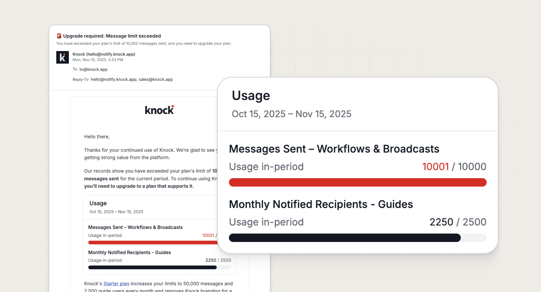 Discover how to automate usage-based upgrade nudges with Knock and Orb, triggering timely alerts when customers near their limits.