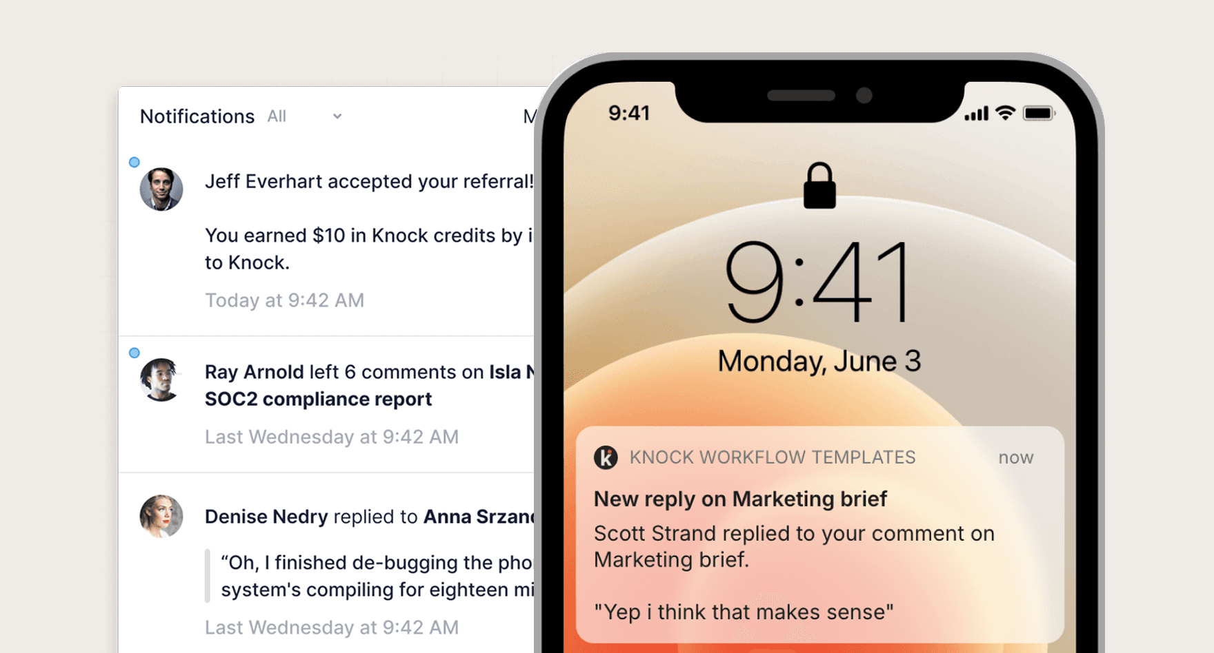 👋 We’re Knock. We run flexible notifications infrastructure that developers use to schedule, batch, and deliver notifications to in-app and out-of-app channels, without the need to write custom application code.
