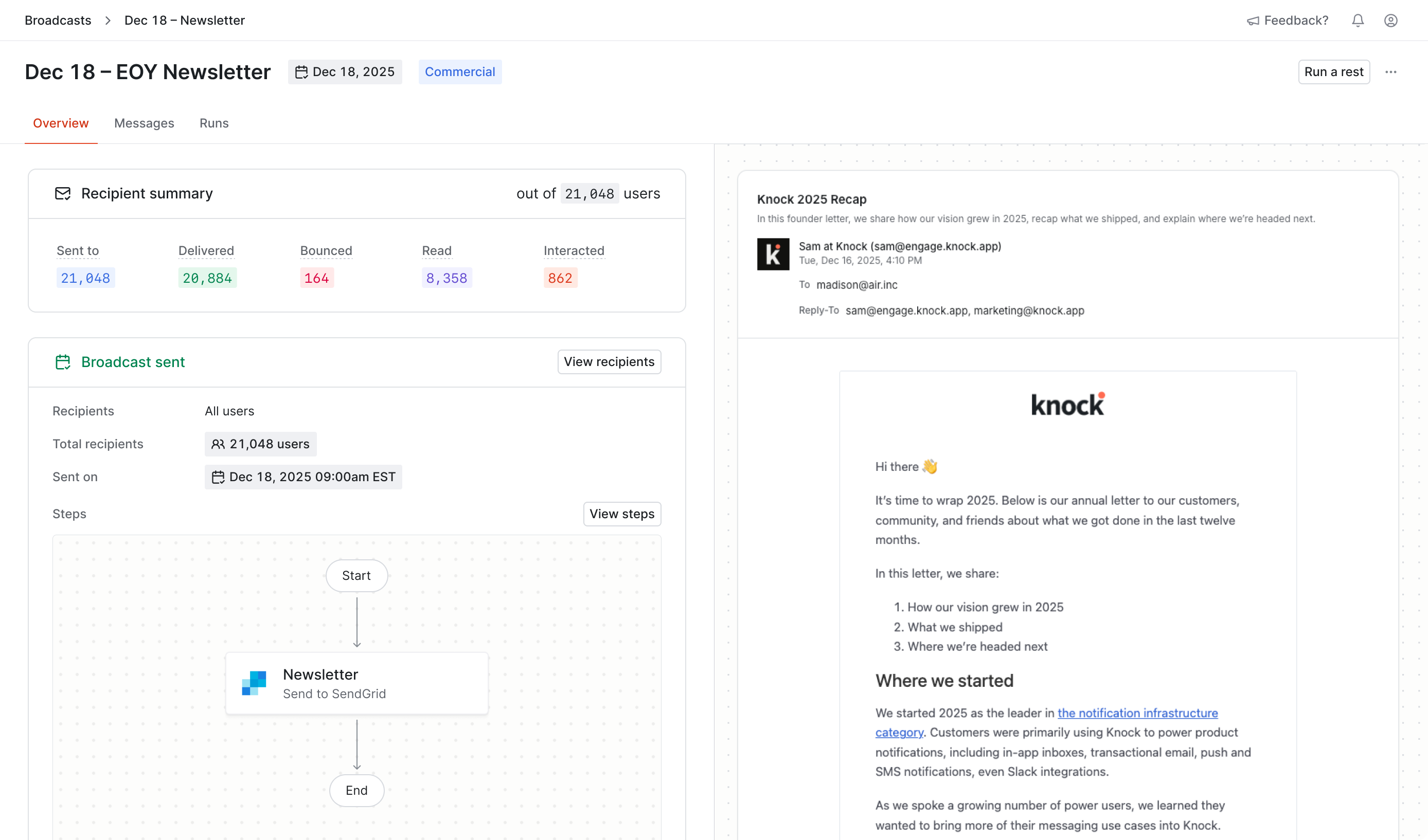We have big plans for 2026. We’re excited to come back from the break and bring Knock to engineering, growth, and marketing teams everywhere.
