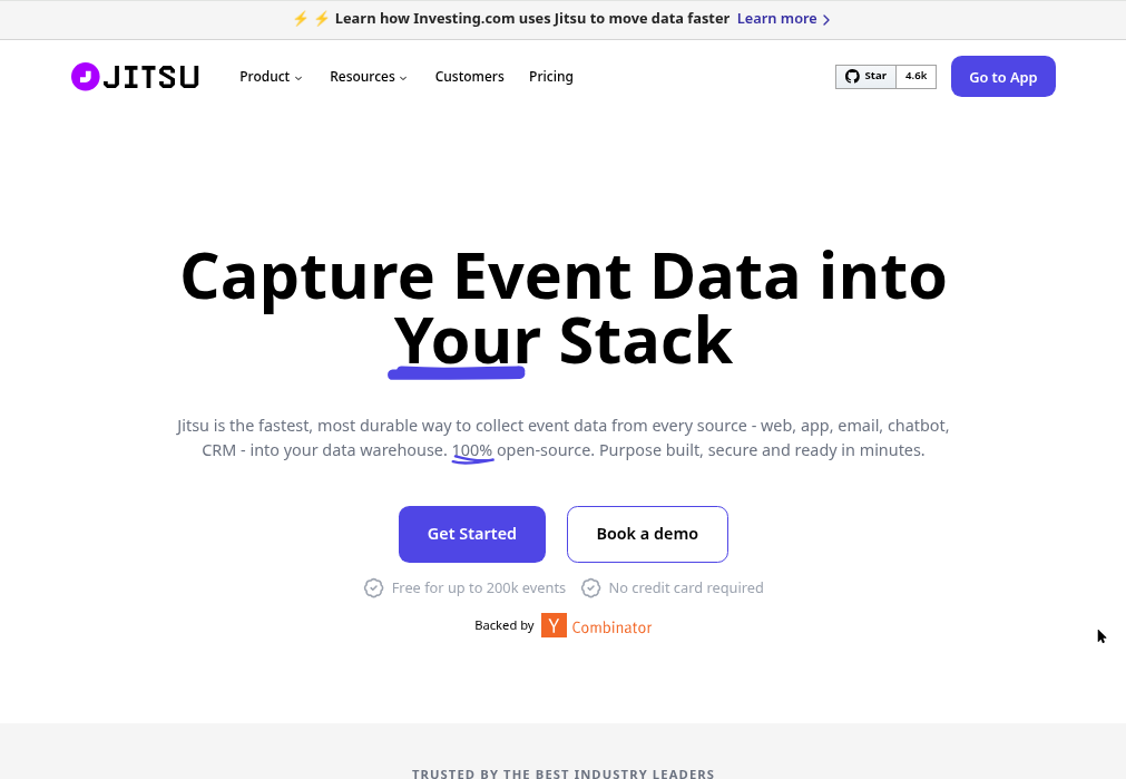 Jitsu is an open-source event collection platform that captures data from websites and apps, then routes it to warehouses and downstream tools. The platform provides a lightweight alternative to commercial CDPs with simple deployment options.