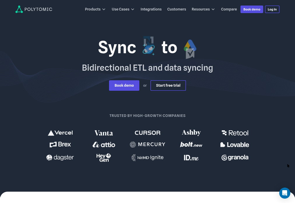 Polytomic is a reverse ETL platform that syncs data from warehouses and databases to business applications. The platform emphasizes developer experience with strong API capabilities and flexible data modeling for technical teams.