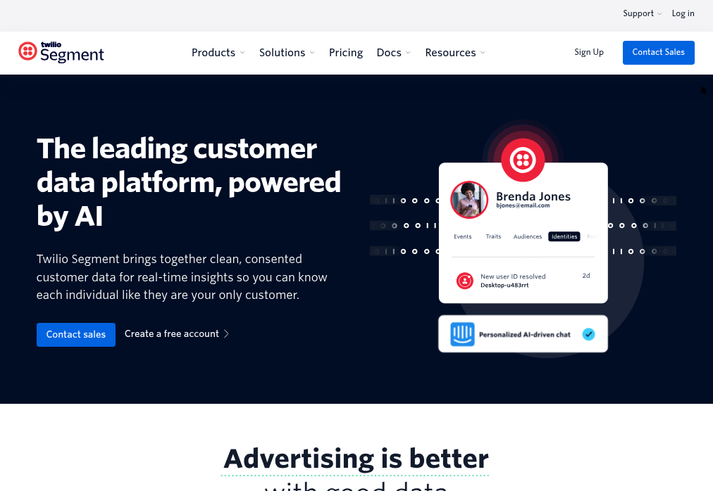 - Identity resolution. Segment stitches together anonymous and known user activity across devices into unified profiles, which improves personalization across your stack.