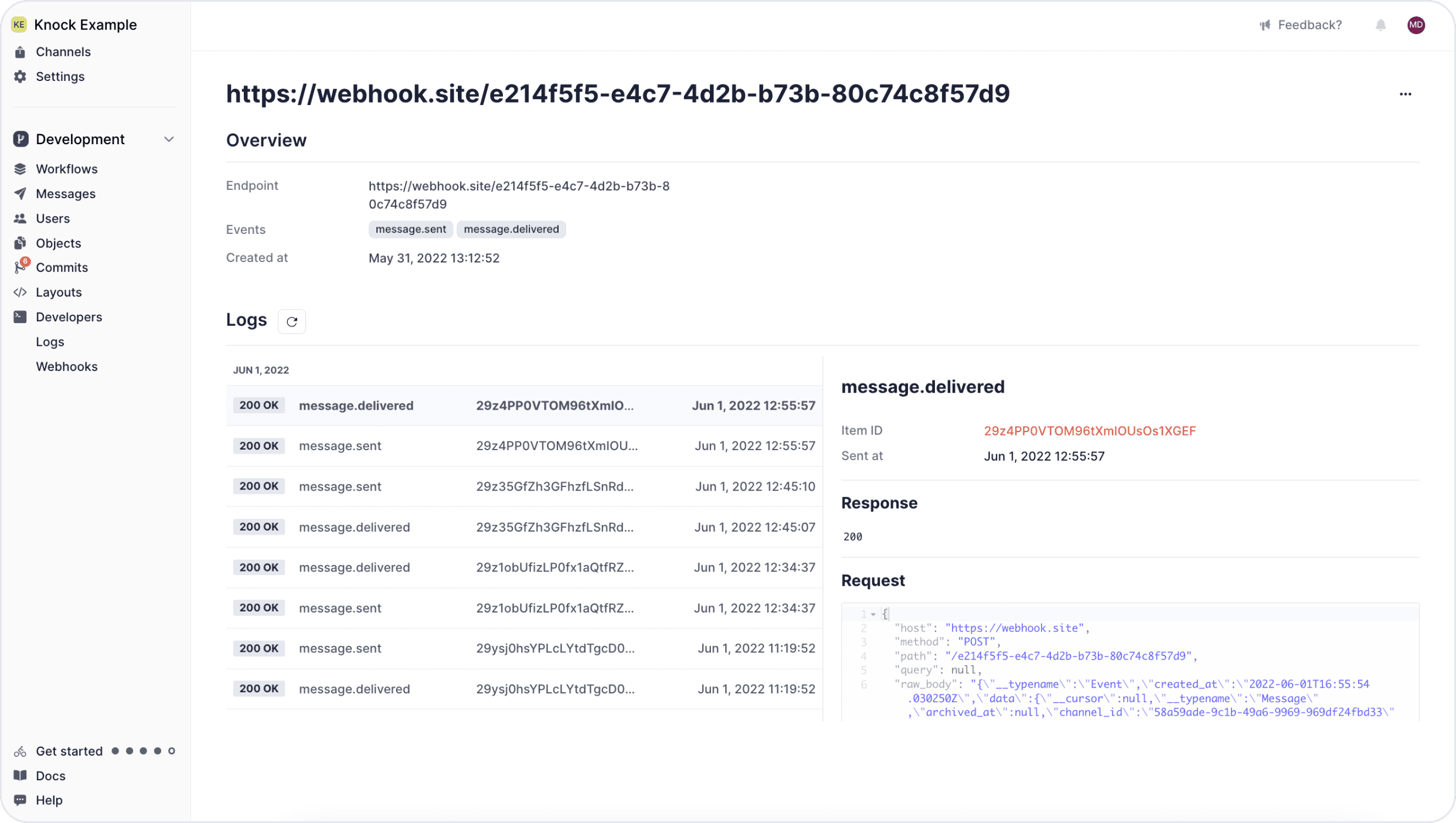 Today we’re shipping support for webhooks in Knock so that you can more easily respond to the notification events happening and keep your system synchronized with the data in Knock. For more advanced use-cases of Knock, our customers need to keep track of the data that we’re generating within their own system. Given the inherently asynchronous nature of sending notifications, there hasn't been a great way to do this today without polling data endpoints. Enter webhooks!