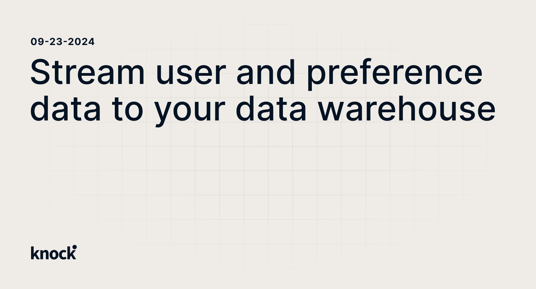 With today's release, you can now receive a stream of user and preferences changes directly into your data warehouse. This makes it easy to build models that analyze your notification opt-out rates and how user profile information in Knock changes over time.