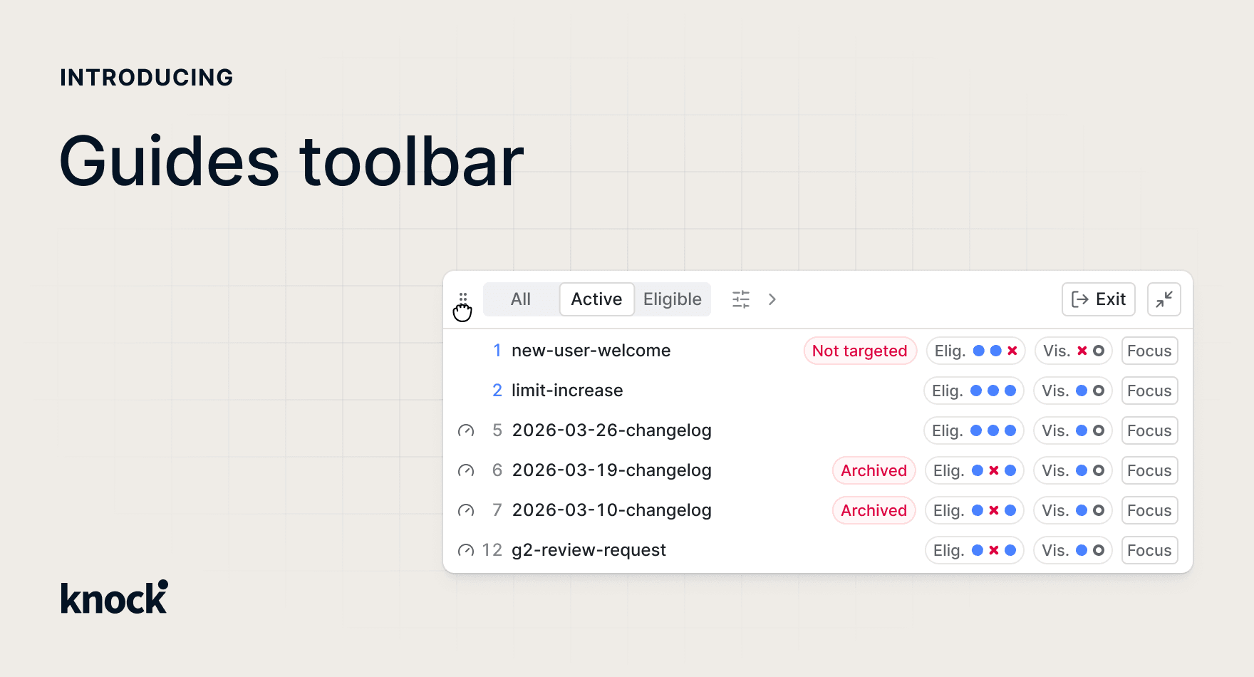 The guides toolbar is available today for all Knock customers. For more information, read the documentation.